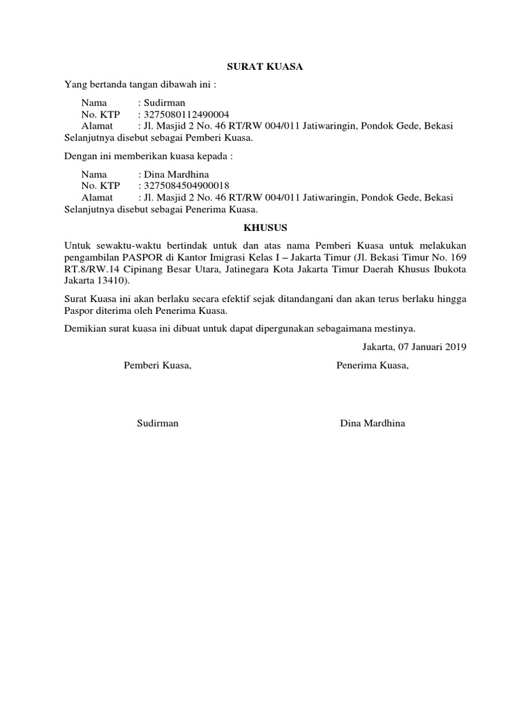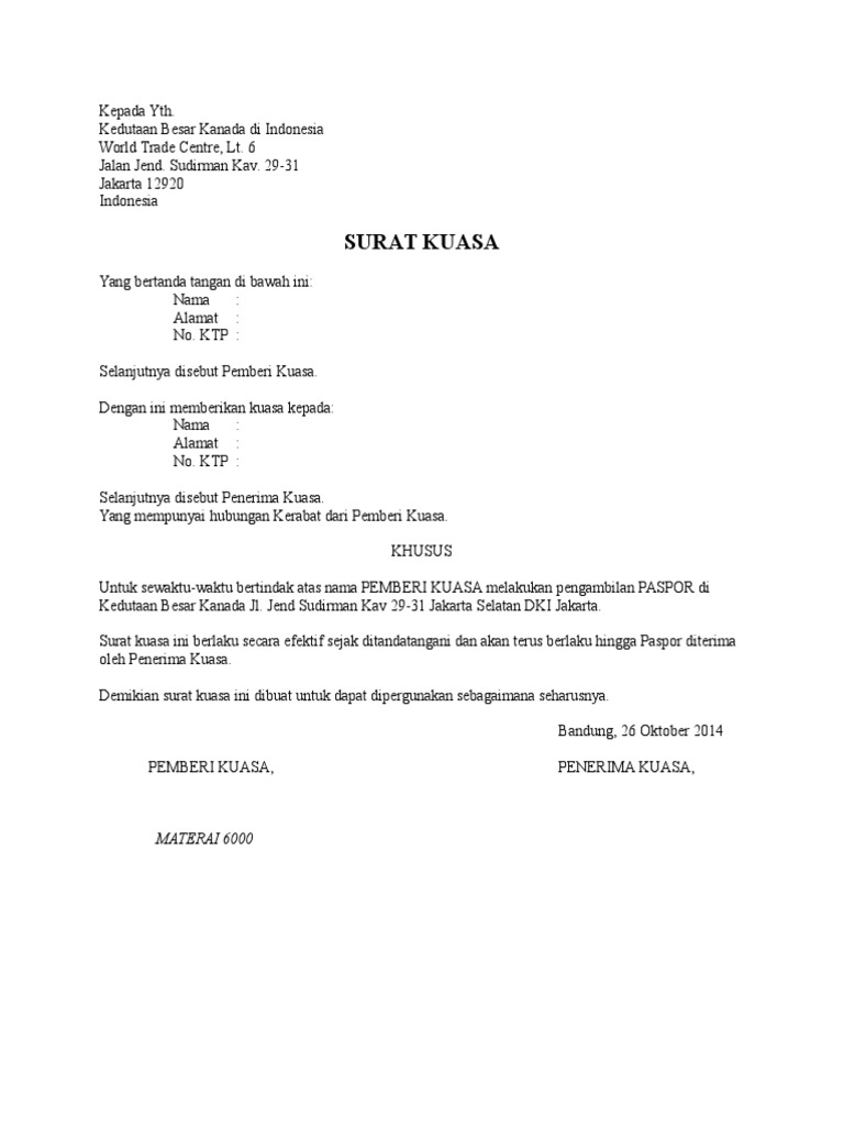 Surat Kuasa Mengambil Paspor Suratmenyurat Net