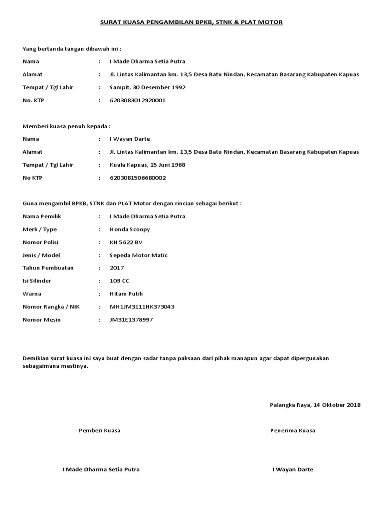 Contoh Surat Kuasa Pengambilan Stnk Atau Bpkb Motor Watt