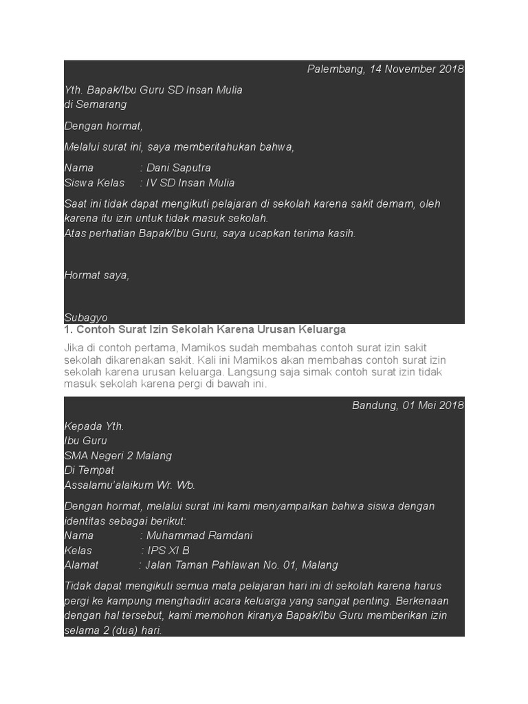 Contoh Surat Izin Tidak Masuk Kerja Sekolah Dan Kuliah